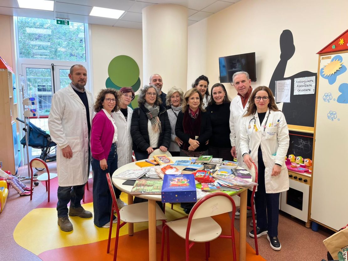 Lunedì 15 dicembre 2025 il nostro Club ha donato libri e materiale didattico al reparto di pediatria dell’Ospedale Giovanni Paolo II, con l’obiettivo di costituire una piccola biblioteca, ricca di libri adatti all’età prescolare, alla prima infanzia e alla preadolescenza.